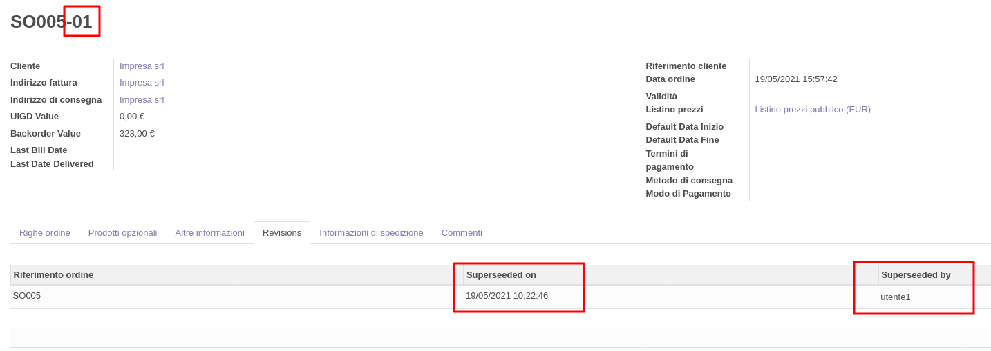 <p>Cliccando su 'New Revision of Quotation' si ottiene un preventivo con un numero di revisione a seguito del numero originale; inoltre nel tab 'Revisions' è possibile accedere al preventivo originale e sapere chi e quando l'ha revisionato.<br></p>